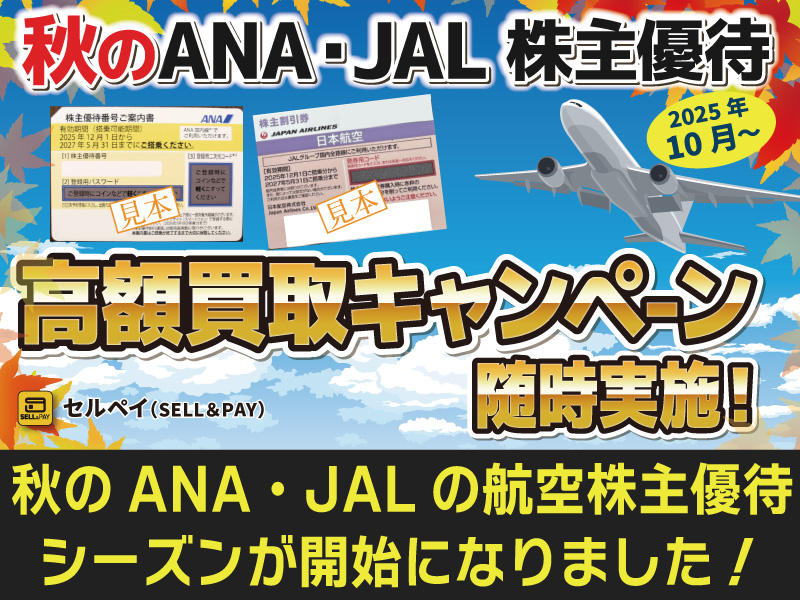 買取り 秋のANA・JALの航空株主優待シーズンが開始になりました!セルペイでは他社に負けない価格で買い取ります!