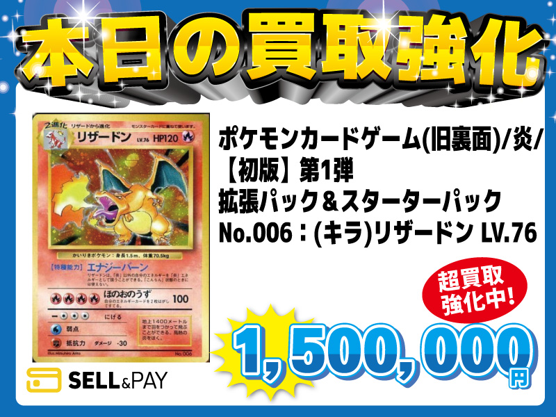 ★9/24(水)【ホビー㉝ポケモンカードゲーム(旧裏面)/炎/【初版】第1弾拡張パック&スターターパック No.006:(キラ)リザードン LV.76】