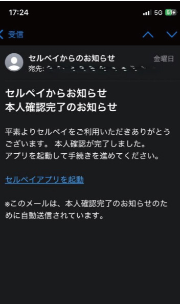 ⑤本人確認完了後、メールが届きますのでメールからアプリに遷移します。