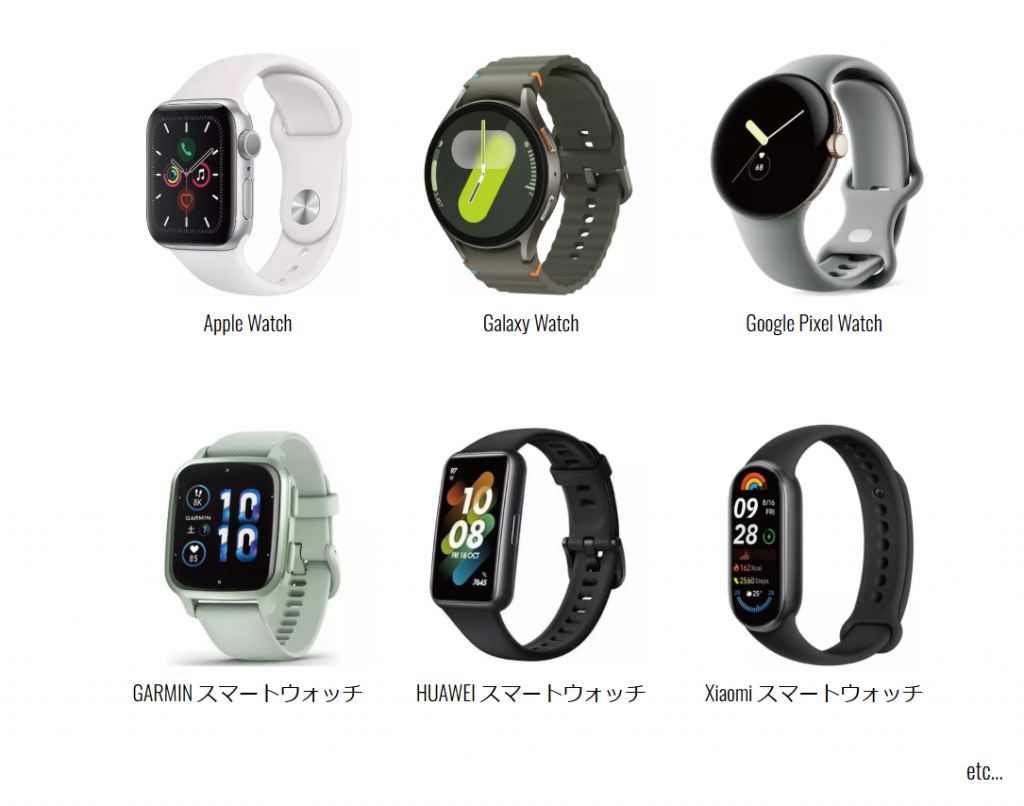 Apple Watchをはじめ、Samsung Galaxy Watch、Fitbit、Garmin、HUAWEIなど各社がラインナップを強化し、ライフログだけでなく決済・音声通話・メール通知・体温測定など多機能化が進行中。