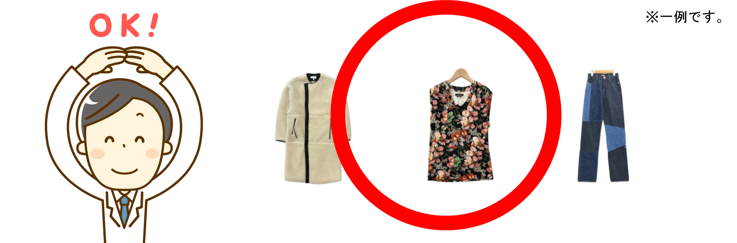 ・破損(キズ、ヨゴレ、シミ、カビ、においがひどいもの)・リメイク品・ファストファッションブランド